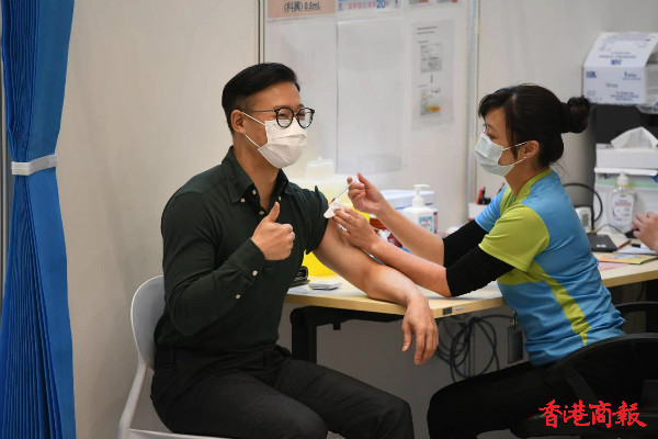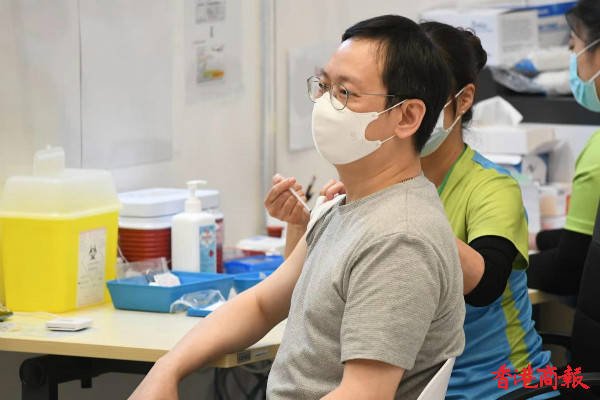 工聯會陸頌雄今日未有到場,麥美娟解釋指陸有輕微發燒,徵詢醫生意見後決定今日暫不打針。郭偉強則指,大家要尊重及相信科學,群體免疫極為重要,疫苗是抗疫唯一出路,「唔好等到冇針先黎打」。