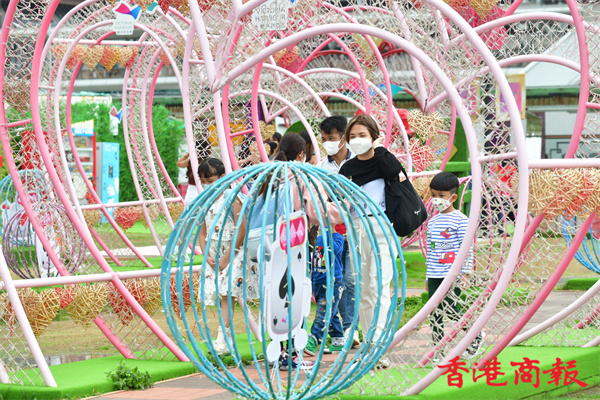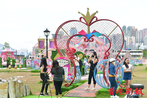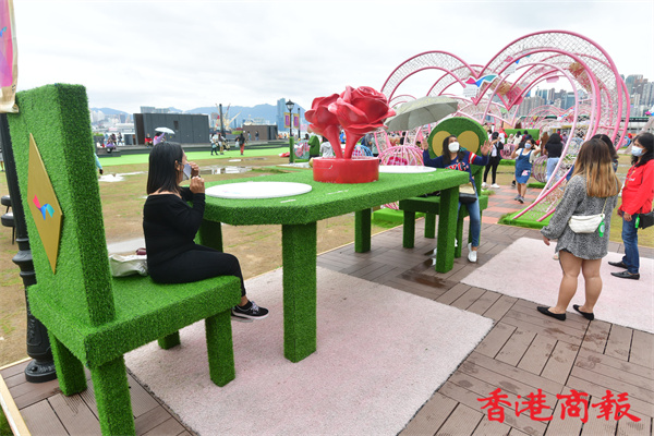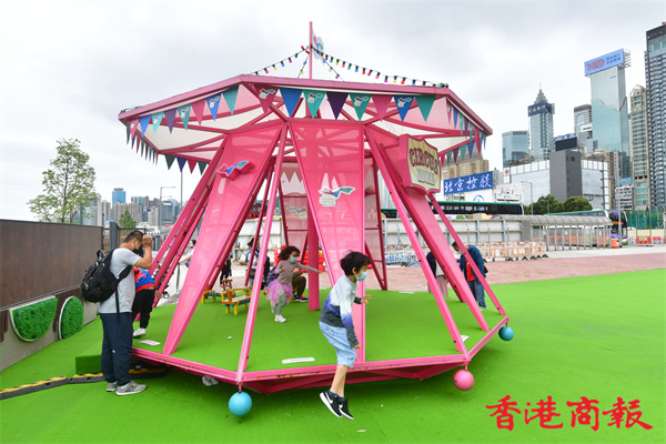 灣仔海濱長廊自去年中開放後,不時換上新裝置加添新鮮感,七彩可愛特色卻是貫徹如一,為市民帶來童真及開心歡笑。(崔俊良 攝)