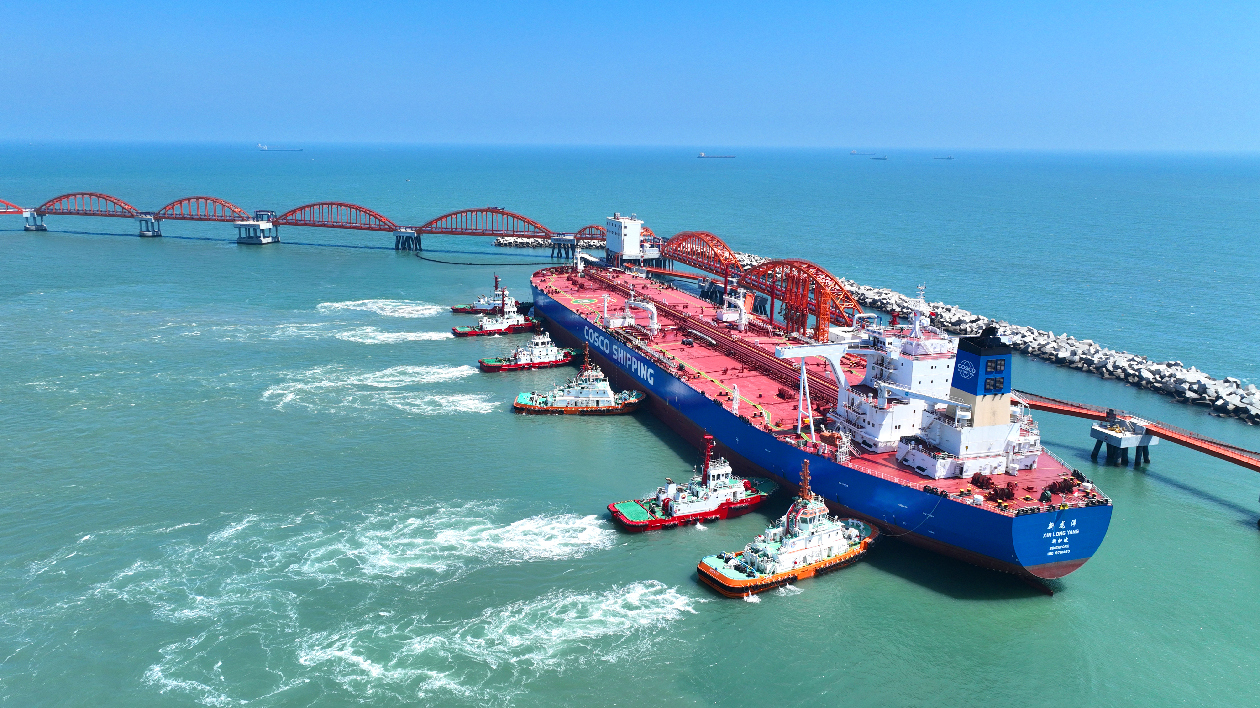 「新龍洋」號自波斯灣港口出發,於10月1日18:00到達揭陽惠來原油碼頭5#錨地。該船長333米、寬60米,屬於大V(Very Large)級油輪。這是當前國際原油航運的主力船型,也是未來保障廣東石化項目原油供應的主力船型,滿載油輪自中東港口出發至項目現場平均約需25天。