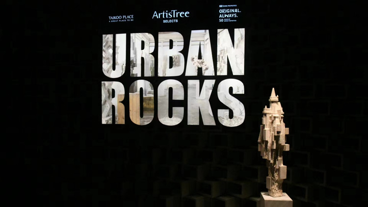 法籍藝術家PoloBourieau的「Urban Rocks」展覽帶來12件全新石雕作品,讓觀眾探索人類存在意義,反思在塑造現代世界的過程中對地球造成的影響,一同在人造與自然並合的石刻雕塑面前,展現人類在現世的各種反思。(蔡啟文 攝)