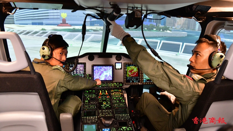 政府飛行服務隊今日(16日)表示,已斥資1.16億元從歐洲訂製空中巴士H175直升機搜索及救援任務模擬飛行訓練器和相關部件,以複製現行直升機駕駛艙,使用飛機操縱桿、座位和顯示屏等真實零件,並模擬香港不同地標和建築物場景,可減省機師前往海外訓練及考核的時間,縮短機師的訓練時間。(崔俊良 攝)