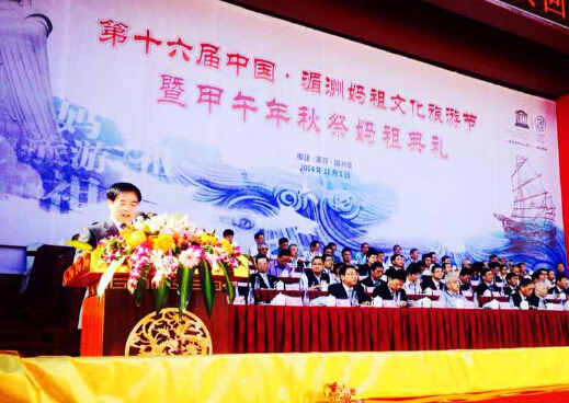 莆田市委书记周联清开幕式上说,多年以来莆台两地紧紧围绕同源妈祖文化,深化交流交往这一主线,着意从更高的主题,更深的层次,更宽的领域推动两岸交流合作。两地间的文化交流越来越近,人员往来越来越频繁,经济合作越来越深入,突显了两岸共同的人文优势,和文化的追求。他说,只要我们两岸之间多交往,多交流,手相牵,心相联,就一定能更好的凝聚起两岸同胞的乡情、亲情和友情,就一定能够更好的服务两岸关系和平发展。