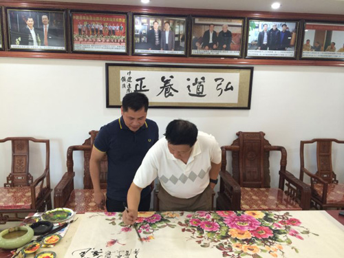 雖是旁邊人群簇擁,但並不會因此而影響創作,依然是談笑風生,揮毫潑墨,隨心而作,這就是我們見到的著名書畫家汪忠玉的第一印象,很多藝術家都好靜,在創作過程中,不喜歡外界的幹擾,而汪忠玉卻完全不一樣,在跟旁人正常的交流中,用不經意的一筆一畫,就能勾勒出一幅動人的畫作。