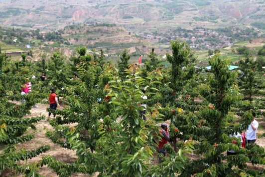 甘肅新聞網蘭州6月15日電 據天天天水網報道:6月13日,武山縣首屆亞洲第一高山大櫻桃采摘節在咀頭鄉咀頭村大坡溝淤地壩百畝櫻桃基地開幕,數百名游客現場體驗采摘活動。