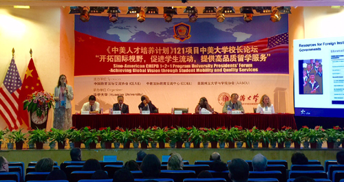 本屆年會主要活動之一《中美人才培養計劃》121項目中美大學校長論壇17日上午在王源興國際會議中心舉行。
