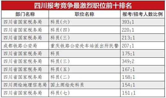 目前,根據各個職位的訪問人氣梳理的最受考生關注的職位榜前十名中,四川省國稅局占了七席。此外,審計署駐成都特派員辦事處和成都鐵路監督管理局的招考職位,也很受關注。