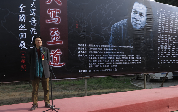 【香港商報網訊】記者陳文智報道:2016年10月29日,中國美術家協會力推出的學術系列展——“大寫至道”莊毓聰大寫意花鳥畫全國巡回展(蘭州站)在甘肅省美術館隆重開幕。據了解,本次蘭州站展覽是莊毓聰先生繼今年8月份濟南站展覽的第二站,展覽將持續至11月4日,共展出其近期作品百餘幅,反映他近年來創作的心路曆程以及對中國畫寫意精神的堅守、追求和探索。甘肅省委宣傳部、省文聯、美協、書協相關領導、藝術家、收藏家、企業家代表、新聞媒體等300餘人參加了開幕式,策展人現場宣讀了中國美術家協會分黨組書記、駐會副主席、秘書長徐裏發來的賀信。