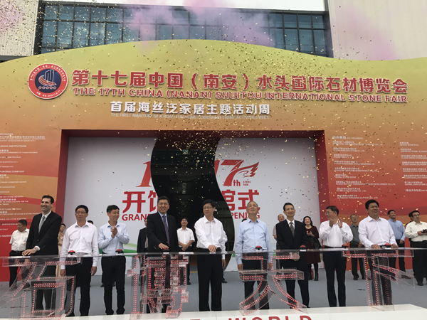 【香港商報網訊】記者張傑報導:第十七屆中國(南安)水頭國際石材博覽會(以下簡稱“石博會”),8日在“中國建材之鄉”——南安市水頭鎮南安市石材產業展示中心隆重開幕。會上南安市委書記王春金表示,本屆展會以“創新、綠色、跨界、共用”為主題,參展產品突出石材創意與文化,輔以石材機械、石材輔助材料、建築陶瓷、水暖器材及其他裝飾材料,集石材產品展覽、標準發佈、技術交流、專題研討、經貿洽談活動於一體。通過展與會、展與銷三者有機結合,全面加快南安打造石材千億產業集群和國際石材之都建設進程。