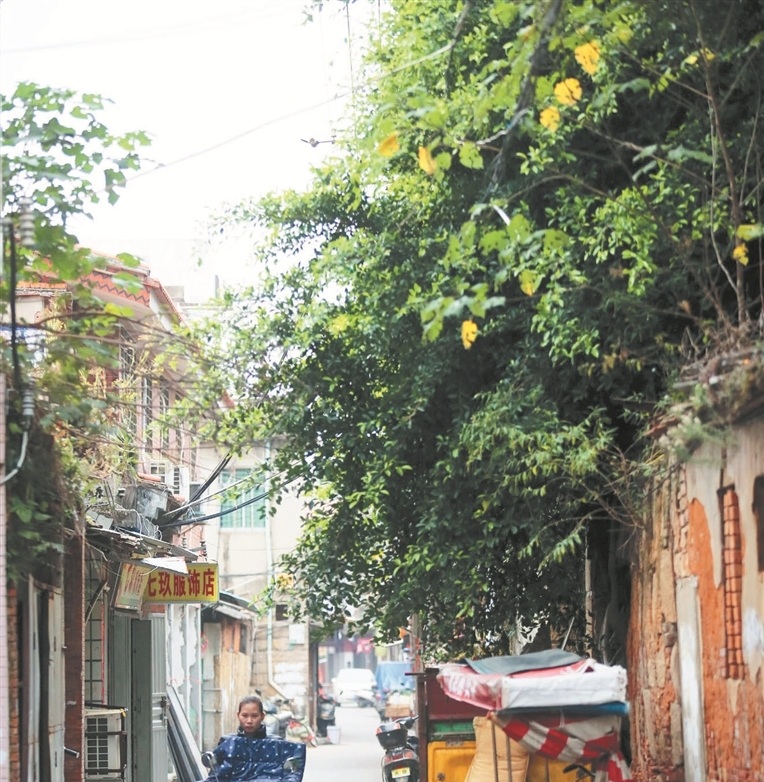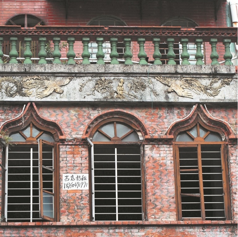 改造路段兩側,紅磚騎樓連排。這些騎樓曆史悠久,大多是底層商店,樓上住房,沿街設置連續騎樓走廊,屋頂有葫蘆形“兒女牆”圍護。