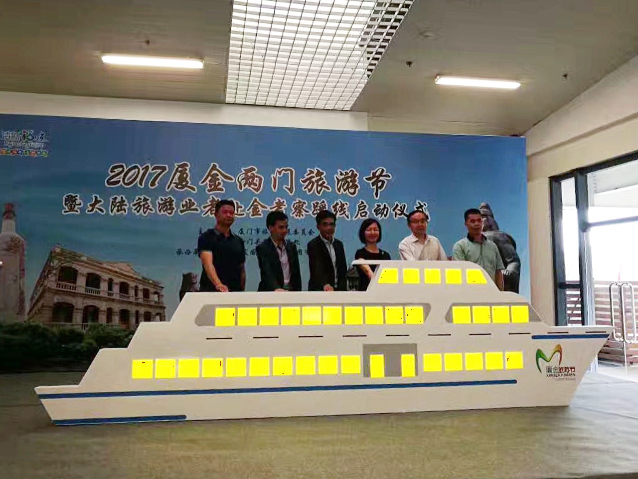 遊輪是往來廈門和金門的主要交通工具。此次啟動儀式以遊輪模型啟動道具為亮點,象征著此次赴金考察踩線活動中,各省旅遊局領導和旅行商赴金門將進行2天1夜的旅遊線路實地考察,體驗金門富有特色的旅遊民俗文化活動。