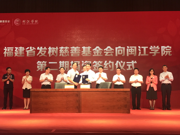【香港商报网讯】17日,福建省发树慈善基金会董事长陈发树代表基金会,向闽江学院捐资2亿元,设立专项奖学、奖教金,用于支持教育事业发展。福建省委常委、福州市委书记王宁,福州市委副书记、市长尤猛军,省委教育工委书记、省教育厅党组书记、厅长黄红武等出席捐赠仪式。
