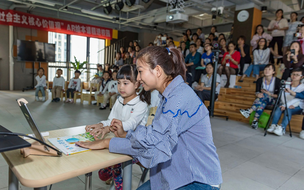 此次活动旨在推动少年儿童“社会主义核心价值观”素质教育,倡导以AR技术手段实现学生教材的全新升级,将生硬的白纸黑字转化为真实有趣的场景展现在孩子面前,从而增加了学习的互动性和趣味性。
