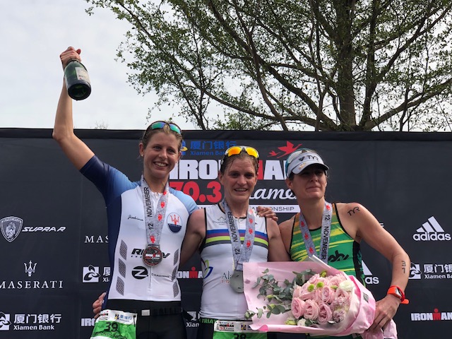 经过游泳1.9公里,骑行90公里以及跑步21.1公里后。最终,来自澳大利亚选手Sam Betten收获了男子组职业冠军,女子组职业冠军则由来自爱尔兰的Eimear Mullan摘得。中国选手巴斯(李鹏程)和胡燕分别摘得了各自年龄组的冠军。