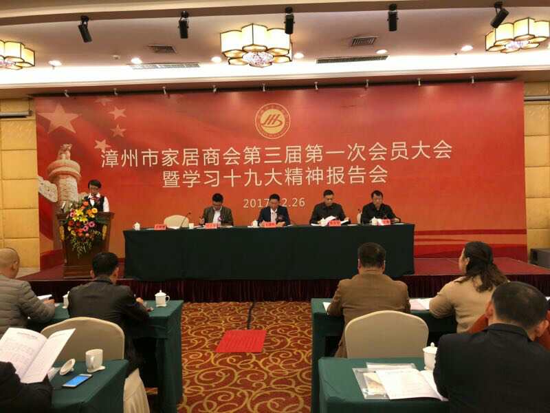 【香港商报网讯】记者叶晴报道:12月26日,漳州市家居商会召开第三届第一次会员大会暨学习贯彻十九大精神报告会。省工商联主席王光远、市人大常委会副主任李珊珊及新一届会长、副会长、秘书长、理事会成员出席会议。
