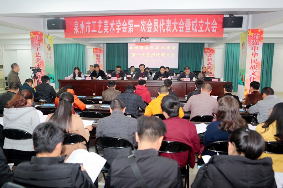 学会成立大会之前,泉州市工艺美术学会圆满召开了第一次会员代表大会、第一次理事会议,审议通过学会《章程(草案)》、第一次会员代表大会选举办法(草案)》、《会费标准》,表决产生学会第一届理事(单位)、监事,表决通过高级顾问、艺术顾问、名誉会长和学会第一届负责人、秘书处内设机构和成立专业委员会方案。