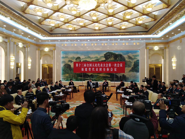 【香港商报网讯】记者田琴、吕斯达北京报道:3月6日下午,北京人民大会堂福建厅里灯光璀璨,十三届全国人大一次会议福建代表团在这里举行全团审议并向境内外媒体开放。来自本报以及人民日报、新华社、中央电视台、华尔街日报、路透社等90多家中外媒体的120多位记者早早赶来,架起摄影机、摆好话筒、打开电脑,聚焦新发展,倾听“福建好声音”。在知无不言的坦诚问答之中,一年来福建发生的巨大变化和正在蓄积的蓬勃生机,让中外记者们频频点赞。
