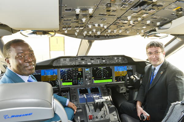 联合国人口基金会驻华总代表洪腾博士、联合国国际民航组织亚太地区主任拉斐尔•吉耶参观“联合梦想号”驾驶室