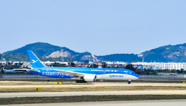 据了解,2017年2月15日,厦航与联合国在纽约签署协议,成为全球首家与联合国开展可持续发展目标合作的航空公司。这架“联合梦想号”飞机在美国波音工厂交付时,联合国副秘书长艾莉森·斯梅尔(Alison Smale)、中国驻美国大使崔天凯、波音中国总裁庄博润(John Bruns)等嘉宾在现场见证了这架特殊飞机的交付。(张杰)