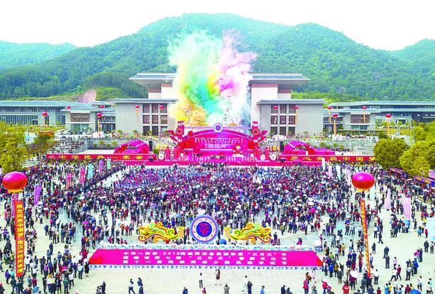 【香港商报网讯】“中华民族一家亲,同心共筑中国梦”。18日,中华一家亲·2018海峡两岸各民族欢度“三月三”节暨福建省第七届“三月三”畲族文化节、第十一届海峡两岸少数民族丰收节,在上杭县客家缘文化中心广场开幕。