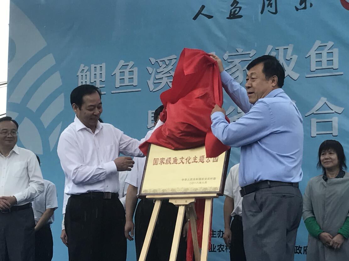 农业农村部副部长于康震和福建省政府副省长杨贤金共同为国家级鱼文化主题公园揭牌。