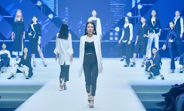 在近两个小时比赛中,选手们进行了活力装、泳装、职业装、礼服四个环节的展示。