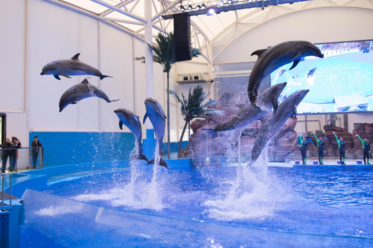 海豚劇場是省福建首個大型海豚科普劇場,幾十隻海豚精靈安家於此,與來自長泰的本土馴養員結下不解之緣:在馴養師的指導下,海豚們時而敬禮、打招呼、頂球,時而來個水上華爾滋,激起美麗的浪花。在這裡,甚至可以與海豚們近距離接觸,進行親密互動,讓可愛的“微笑天使”給你一個動人的親吻,帶來太平洋暖流般的心曠神怡,仿佛置身大海,浪花聲、海豚聲,聲聲入耳。