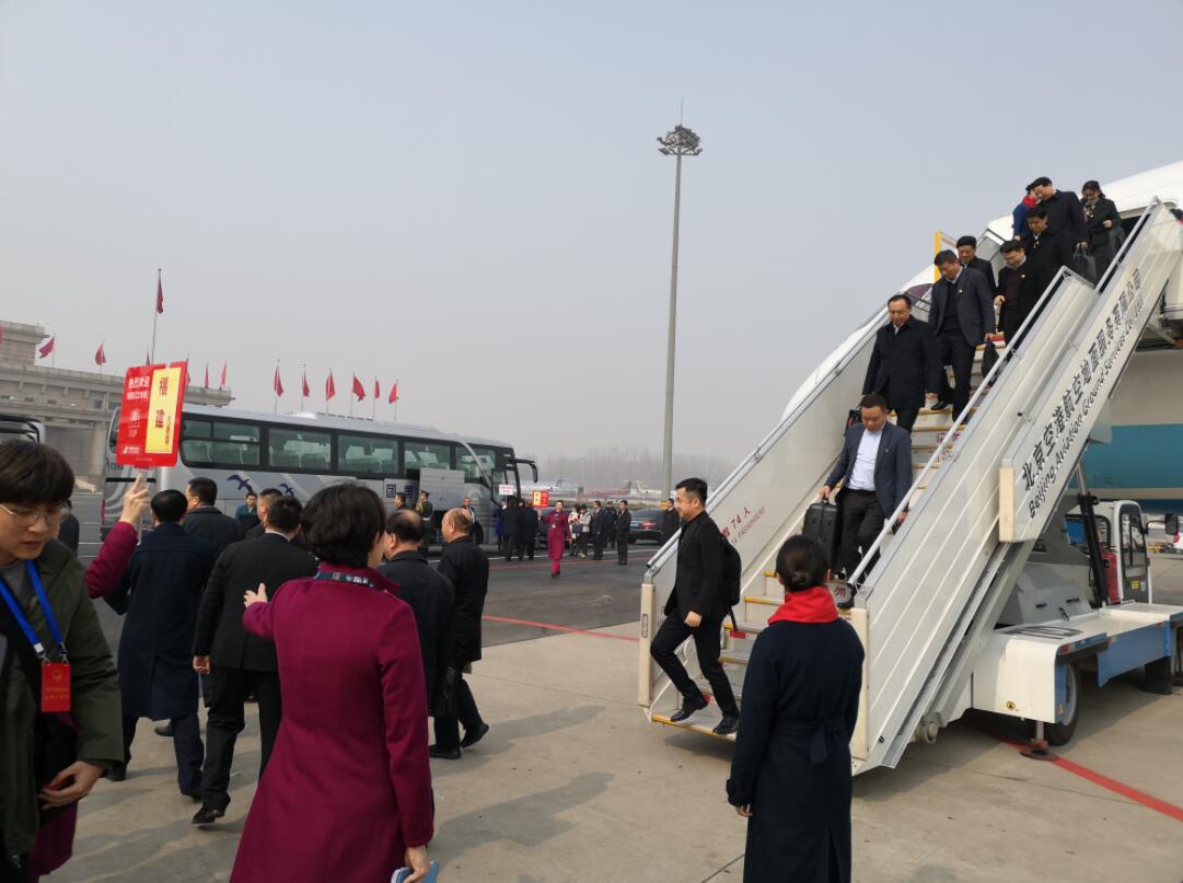 來自福建省的全國人大代表乘坐飛機抵達北京