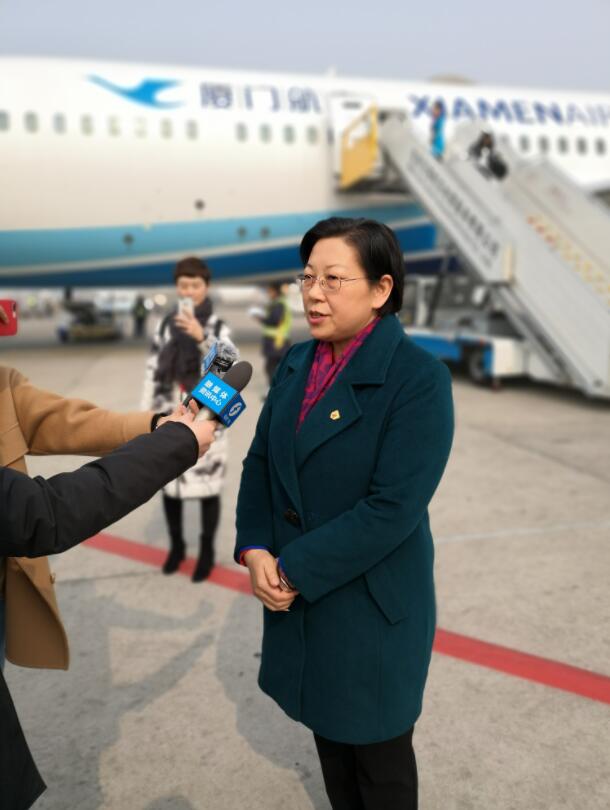 出席十二屆全國人大五次會議的在閩全國人大代表在機場接受媒體採訪