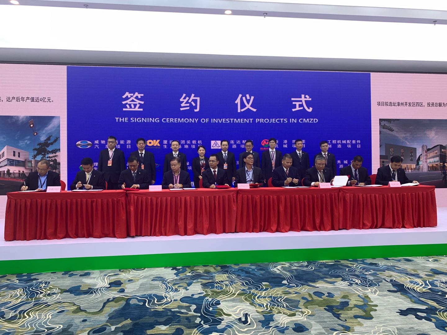 當天,理源調味品生產、共享綠穀食品園、白玉蘭冰糖、巴夫洛物流、新能源汽車、新港熱能機械、卡蓮達精密儀器、裝載機生產基地、工程機械配套件製造、閩秀城文化旅遊等10個項目現場簽約,累計總投資達86.7億元。
