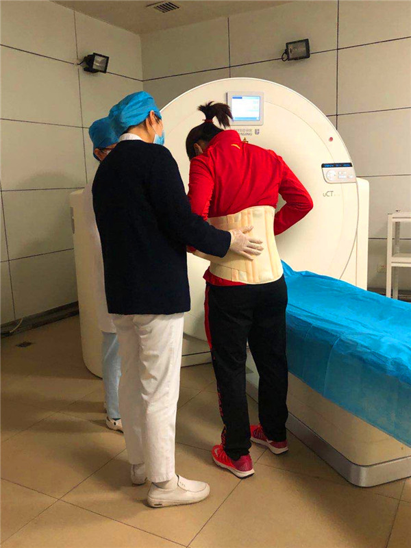 運動員完善檢查時專業護理人員全程陪同,防止二次損傷