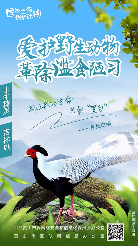 黃山市委宣傳部相關負責同志指出:“保護野生動物,就是保護人類自己”,這不僅是防控新型冠狀病毒引發肺炎疫情時期的社會共識,也是構建人類命運共同體、實現人與自然和諧共生必須始終堅守的信條。為維護生物安全和生態安全,促進人與自然和諧共生,今天我們有責任做得更好,為了自然界的生命,也為了自身健康,遵守法規、人人有責,革除陋習、從我做起,讓我們攜手同心,愛護生態環境、保護野生動物。