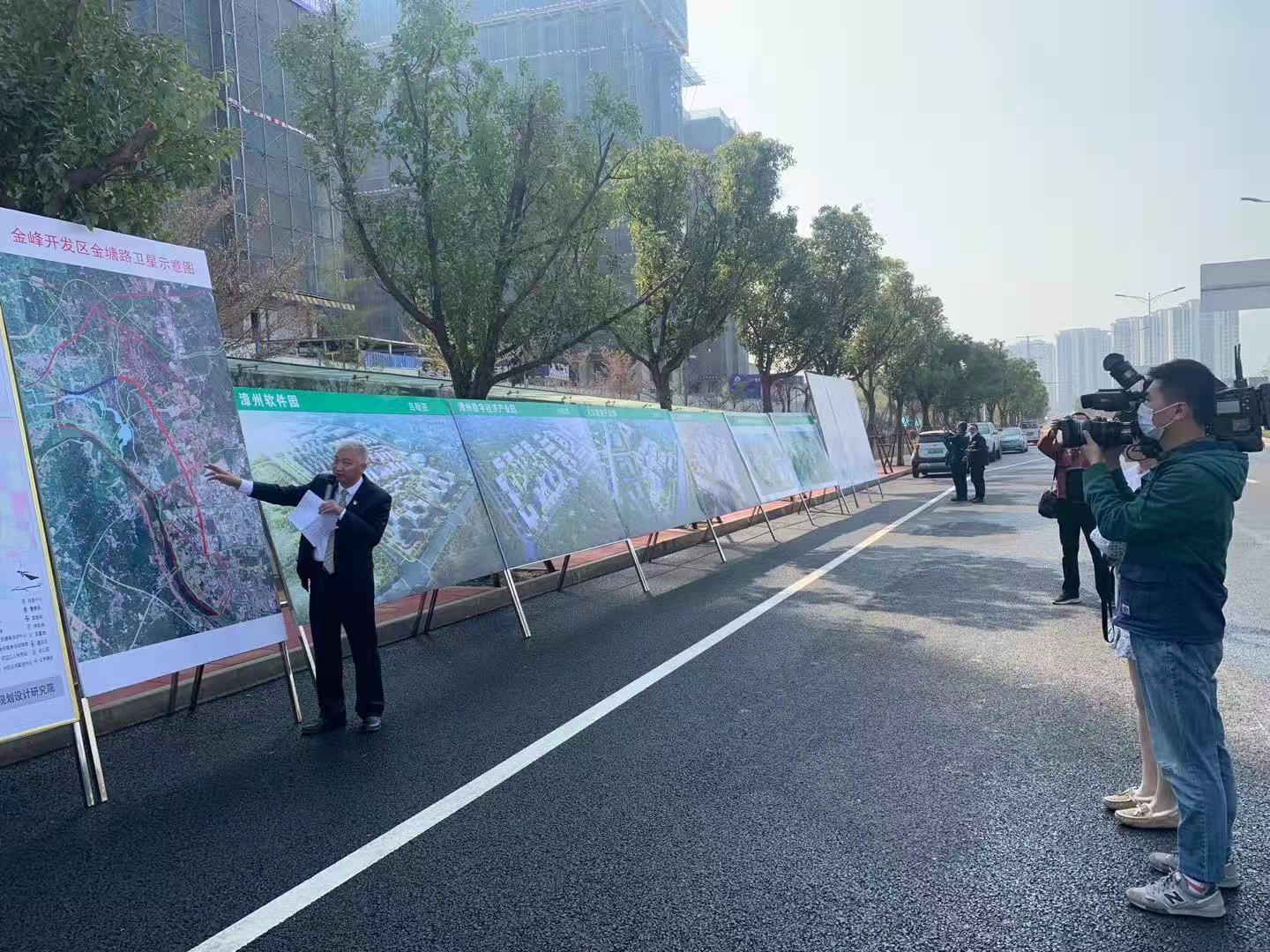 金塘路項目道路總長10.2公里,分二期建設,一期工程長7.7公里,總投資25.8億元,二期工程長2.5公里,總投資約10.8億元。道路紅線寬60米,雙向6車道,道路兩側退讓綠地30米,設計時速60公里/小時,建設內容包括道路工程、交通工程、綜合管廊、管線(含雨水、污水、給水、燃氣、電力、電信及中水等)、道路照明工程、綠化工程等其它配套基礎設施。
