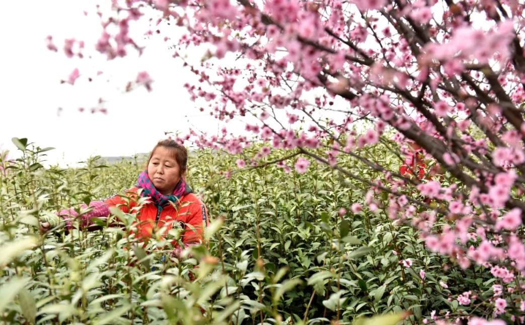 3月3日下午,在安徽省巢湖市槐林鎮年晟農業生態茶園,成片的茶樹已經吐露出嫩綠的新芽。茶園與盛開的梅花交相輝映,一派田園風光。十幾名採茶工人腰挎竹簍,穿梭於梅花相伴的綠色茶叢中,個個雙手上下翻飛,熟練地將一顆顆飽滿的嫩芽裝進竹簍。年晟農業生態茶園面積1400餘畝,受氣候影響,今年春茶的採摘期較往年提前了半個多月。