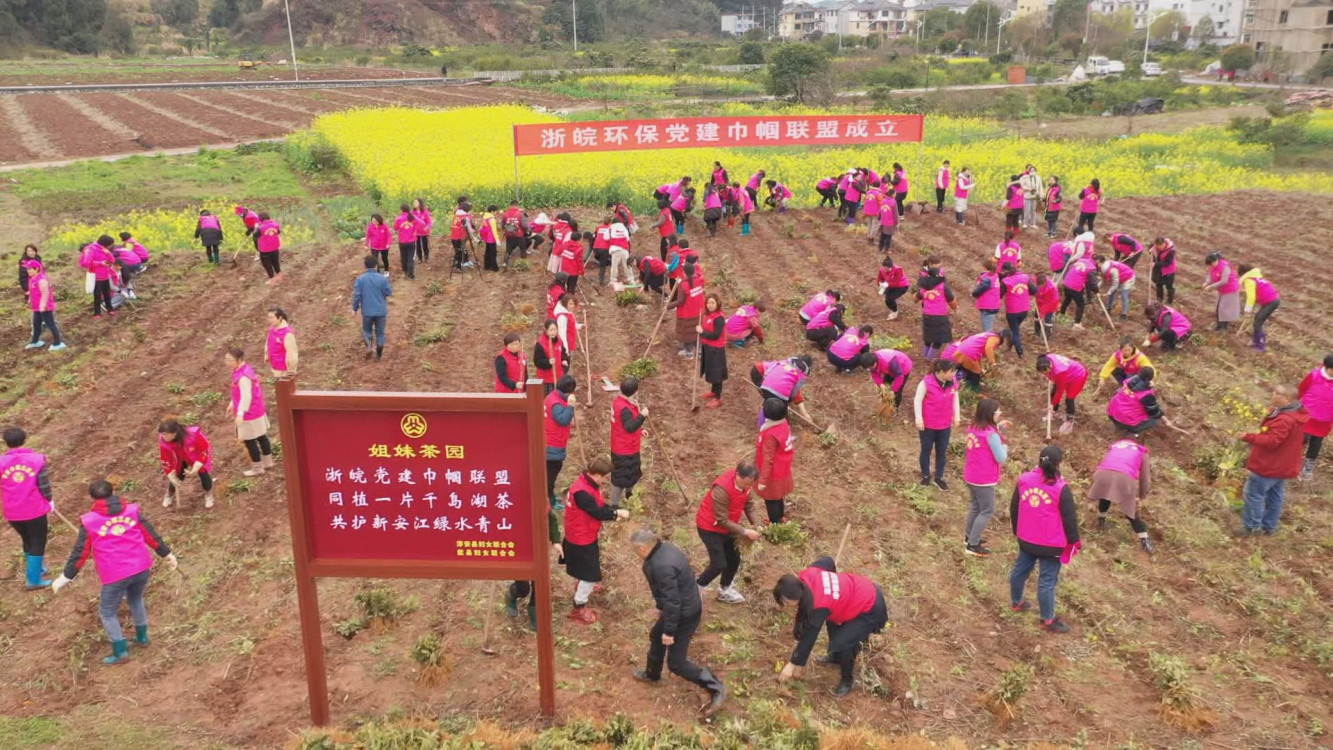 同植巾幗茶園、共迎綠色亞運。3月7日,皖浙環保黨建巾幗聯盟在浙江千島湖成立,通過黨建引領,皖浙兩地200多名巾幗志願者以參加新安江跨省流域生態環保公益行動的方式過三八節,在浙江淳安亞運分村種下兩地名茶苗,併發出“共飲一江水、共植一片綠、共護母親湖、喜迎亞運會”的倡議。