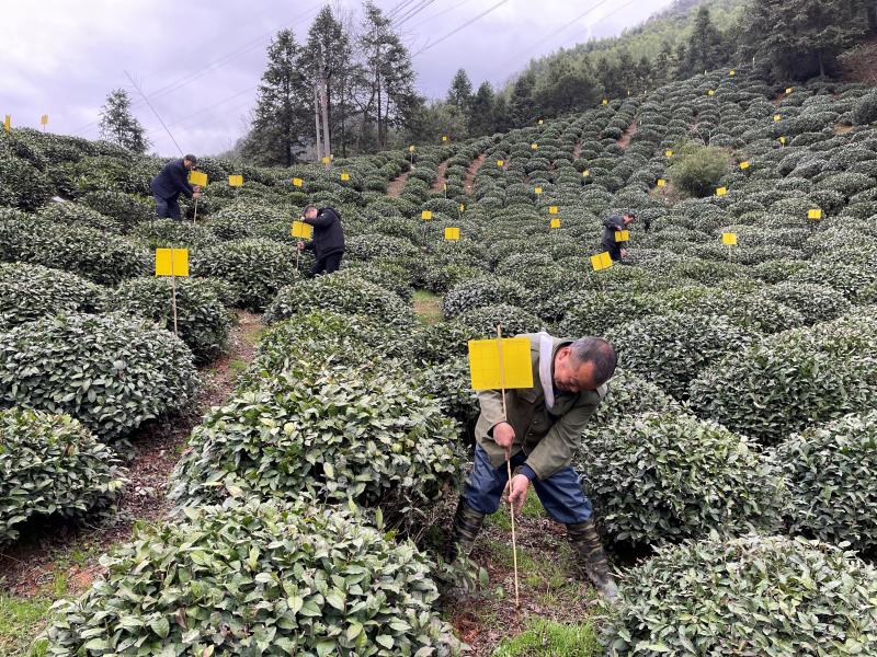 連日來,皖南黟縣漁亭鎮各村組織茶農利用採茶前空餘時間,開展茶園黃板扡插工作,保障茶園效益穩步提升。