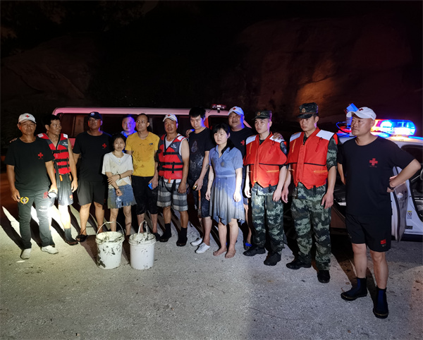 當晚23時許,該局晉江工作站接報警稱,在福建省晉江市塘東沙灘一礁石上有4名群眾被困。接警後,該站立即組織執法人員攜帶救生設備前往現場。到達現場後,該站人員通過手機定位鎖定被困人員位置,發現被困人員所處位置距岸邊較遠,所處海域礁石密佈,海上風高浪急,能見度較低,海警執法艦艇無法靠近,且正處於漲潮期,如不及時施救,礁石隨時有被淹沒的危險,危及遊客生命財產安全。該站立即聯繫圍頭邊防派出所和圍頭海上義務救護隊出動小型摩托艇前往救援,經過近一個小時的緊急救助,被困人員被轉移至安全地帶。
