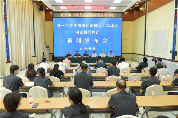 6月2日上午,泉州市晉江洛陽江流域水生態環境司法協同保護新聞發佈會在泉州市中級人民法院召開,會上發佈《關於加強泉州市晉江洛陽江流域水生態環境司法協同保護的實施意見》(以下簡稱《實施意見》)及十個典型案例,並通報兩江流域水生態環境保護工作情況。