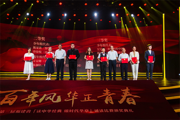 為慶祝中國共產黨成立100周年,教育引導黨員幹部群眾從党的百年光輝歷程中感悟思想偉力、汲取奮進力量。27日,由福建省文化和旅遊廳、福建省廣播影視集團聯合主辦的“百年風華正青春”--第三屆福建省“讀中華經典頌時代華章”誦讀比賽頒獎典禮在福州舉行。