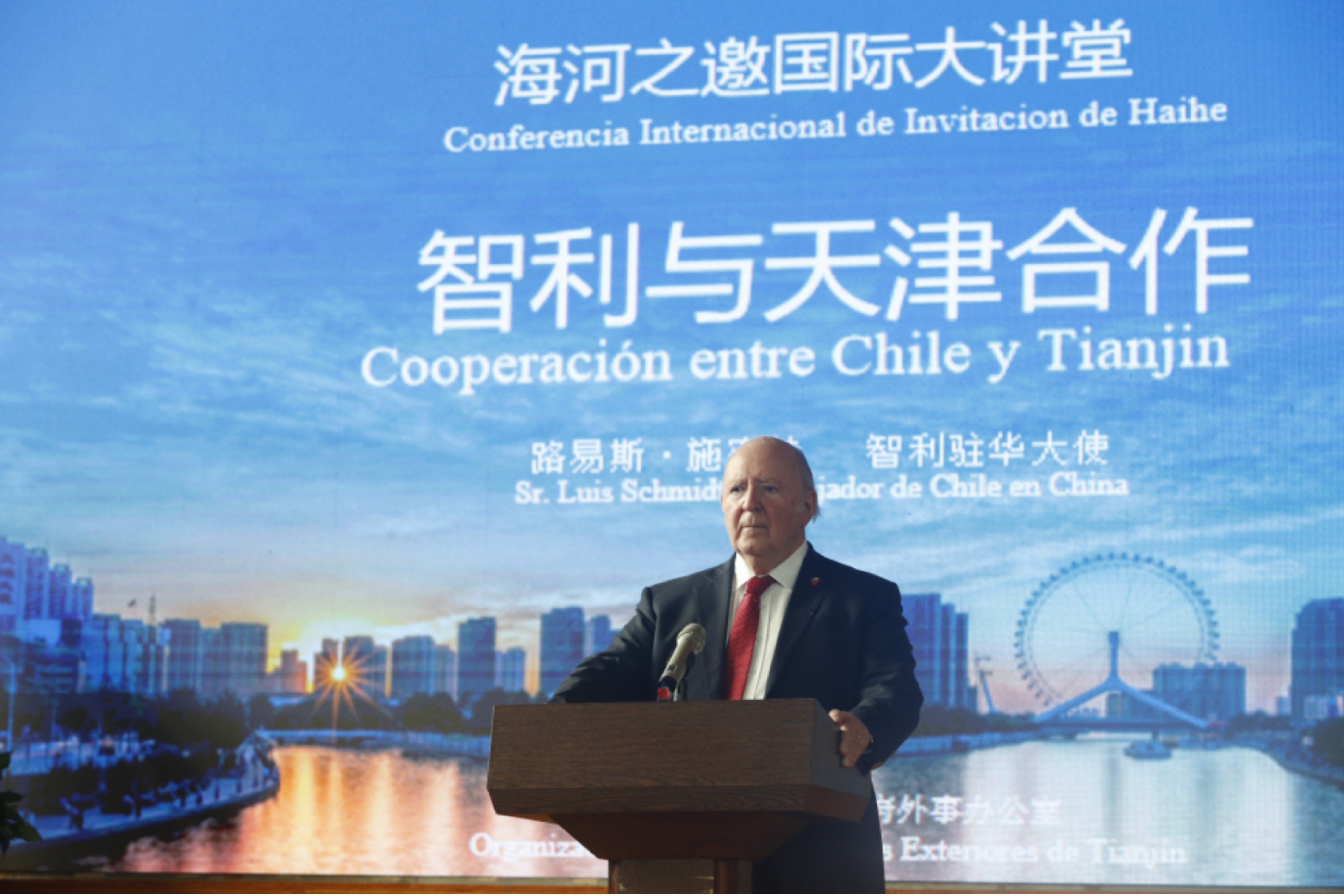 14日,「海河之邀」國際大講堂在天津中智示範農場京津冀山下美術館舉辦,活動旨在進一步加強天津與智利友好合作,積極打造中智示範農場品牌,服務天津國際消費中心城市建設。智利駐華大使路易斯·施密特受邀參加並就如何推動智利與天津合作進行專題演講。