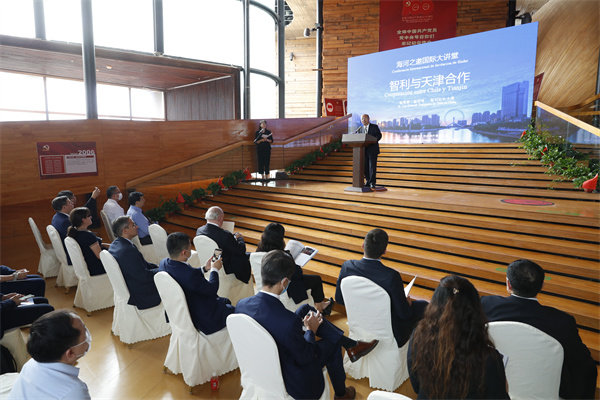 活動前,天津市外辦主任欒建章與智利駐華大使施密特就加強天津與智利交流合作進行了工作會談,共同參觀了京津冀山下美術館內「建黨100周年」主題書畫和圖片展,天津市農業農村委、薊州區政府負責同志參加。來自天津市20家企業的代表出席「海河之邀」國際大講堂活動並與智利駐華使館官員進行了交流互動。(記者 高乙菲)