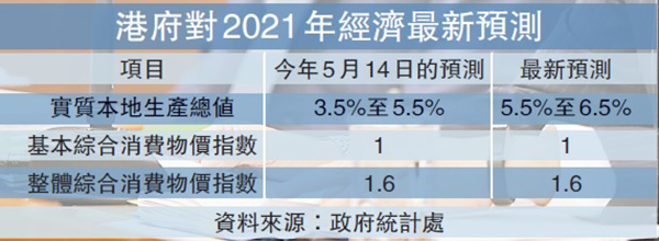 通脹預測方面,歐錫熊表示,隨經濟復蘇和進口價格上升,基本通脹率在短期內或會進一步上升,但由於本地經濟仍然在低於生產容量的水平下運行,整體價格壓力應保持大致受控,今年基本消費物價通脹率和整體消費物價通脹率的預測維持在1%及1.6%。