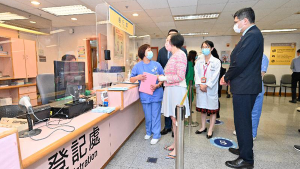 食物及衛生局局長陳肇始今日(9月30日)視察位於瑪麗醫院、伊利沙伯醫院和屯門醫院的新冠疫苗接種站,鼓勵到公立醫院覆診的病人和訪客接種新冠疫苗。