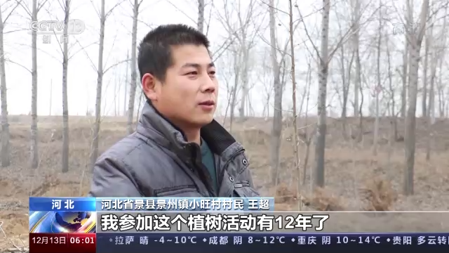 河北省景縣景州鎮小旺村村民 王超:我已經連續參加義務植樹12年了,我感覺這個活動特别有意義,看着自己栽種的小樹一天天長大,特别有成就感。