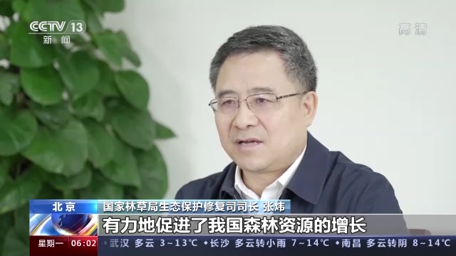 國家林草局生態保護修復司司長 張煒:開展全民義務植樹,有力地促進了我國森林資源的增長,使我國森林覆蓋率由上世紀80年代初的12%提高到23.04%,森林蓄積量由90.28億立方米提高到175.6億立方米,使我國成為全球森林資源增長最多,人工林面積最大的國家。