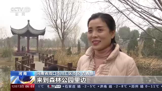 河南省周口市川匯區市民 吉青慧:來到森林公園裏邊,看到環境特别好,空氣特别清新,心情也自然而然特别美。