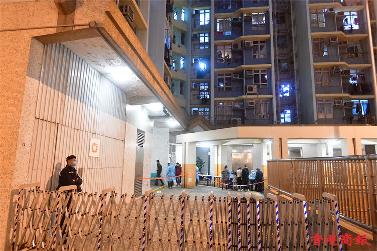 深水埗富昌邨富悅樓圍封強檢現場。崔俊良 攝