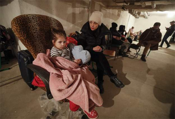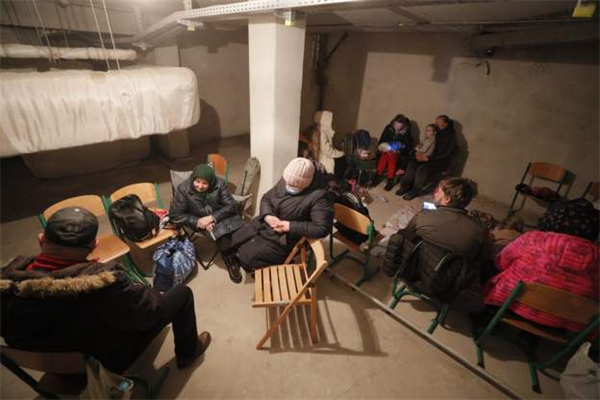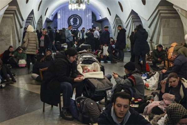 停電期間,孩子在燭光下看書;車輛在加油站外大排長隊;自動取款機前聚集着前來提取現金的市民;俄羅斯駐烏克蘭大使館的工作人員將文件打包裝上車;軍車在基輔街上遊蕩;烏克蘭居民在地鐵站避難......
