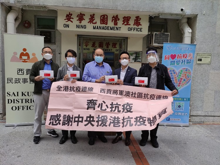 民政事務總署轄下的各區民政事務處今日(2月28日)聯同「全港社區抗疫連線」,在全港不同地區向市民免費派發超過十萬套中央援港抗疫物資——快速測試套裝,並會在未來數日繼續在各區派發,供他們自行檢測,以盡早識別感染者。派發地區包括早前因應污水監測呈陽性結果相關的地區、限制與檢測宣告行動的圍封強檢區等,務求盡快發放中央援港抗疫物資給有需要人士,讓居民進行快速測試。