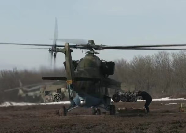 俄羅斯國防部今日(1日)在推特公布首段RF武裝部隊直升機在烏軍事行動期間的影片,展示了直升機從起飛到空中作戰的全過程;片段亦可見有軍車遇襲後嚴重受損,殘骸散落在路邊。