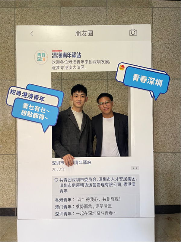 同樣在深創業的還有港澳青年蔡友翔,他從2020年開始來深圳發展,算是較早來深圳發展的一批香港人,因為疫情原因,他已經有兩年沒有回去了。剛來羅湖,蔡友翔和一位台灣友人合夥開了一個公司,公司一年之內就倒閉了,之後他就在華強北開了一家創意設計和視頻拍攝的公司,做起了網紅生意。「這兩年我在內地走了很多地方,我想要把在這邊看到的東西、把我所了解的信息傳遞給更多香港人,告訴他們內地的發展環境非常好,希望大家都跟我一樣來到深圳創新創業。」蔡友翔說道。現在他居住在青年驛站,認識了很多港人鄰居,讓他很有親切感和歸屬感,他表示接下來將集思廣益,思考如何幫助更多希望到大灣區發展的香港同胞在深圳安居樂業。